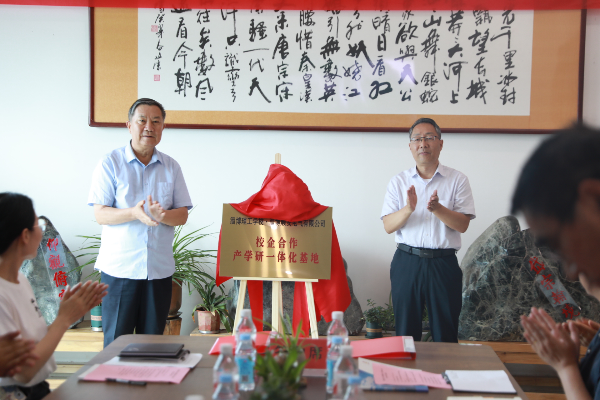 劉克軍和張輝新為《產(chǎn)學(xué)研一體化實(shí)訓(xùn)基地》揭牌。